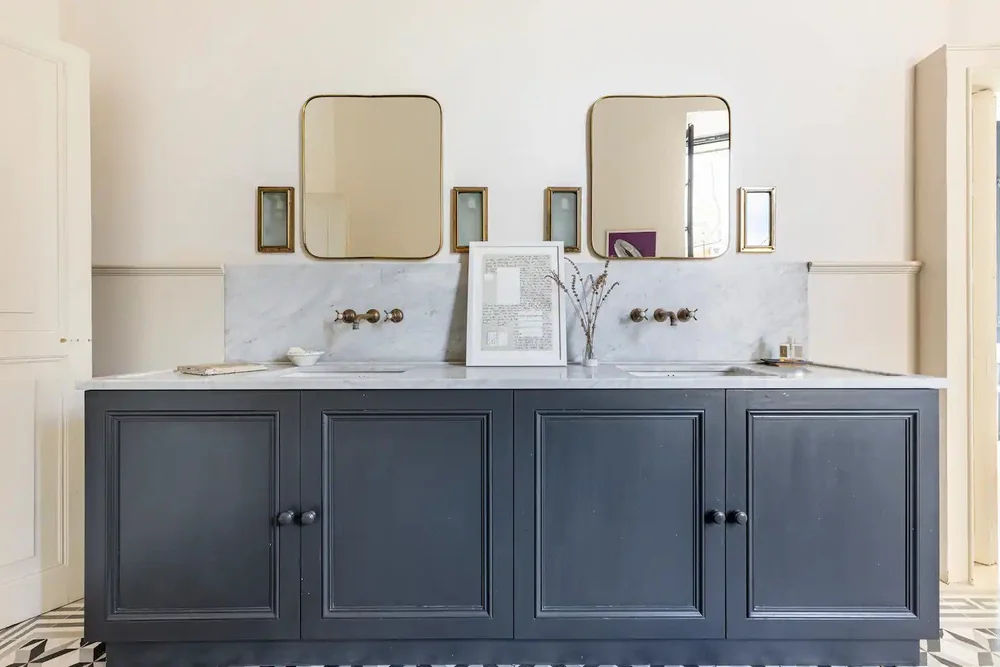 Wake to the church bells in 5 spacious double bedrooms, each with ensuite. Modern comforts include Wi‑Fi, A/C, underfloor heating, a fully equipped kitchen, private courtyard with BBQ, state-of-the-art cinema room, Sonos audio, and table tennis.