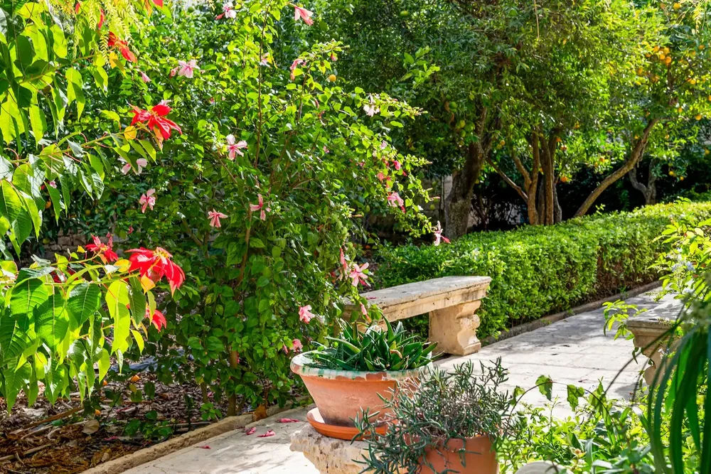 Nestled among verdant gardens and adorned with classical statues, the Palazzo’s limestone walls and traditional Maltese balconies tell a tale of heritage and craftsmanship. A majestic fountain graces the garden, creating a serene backdrop for relaxation.